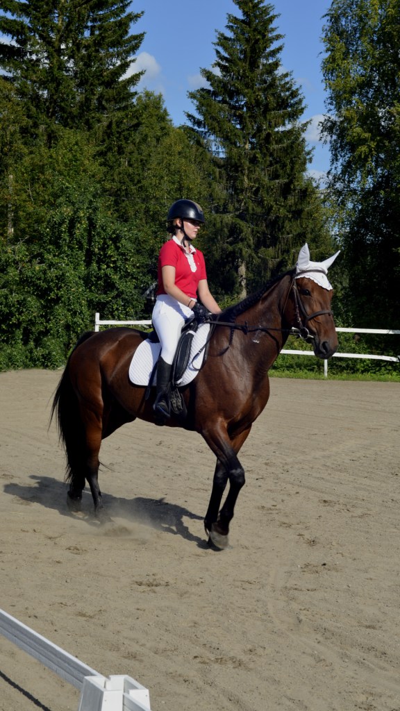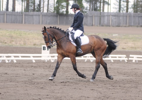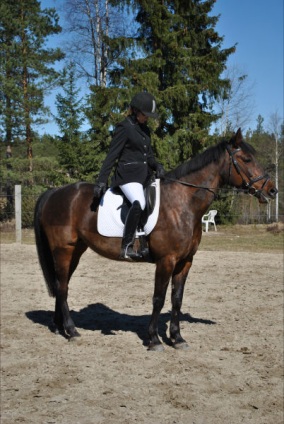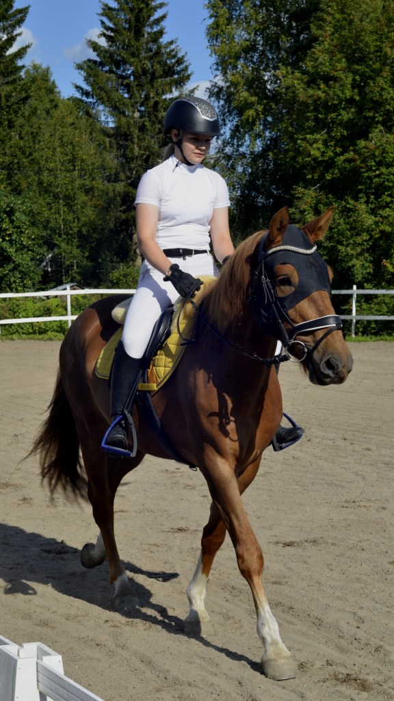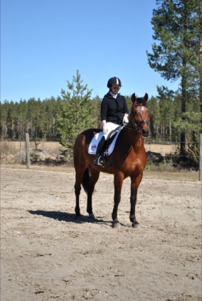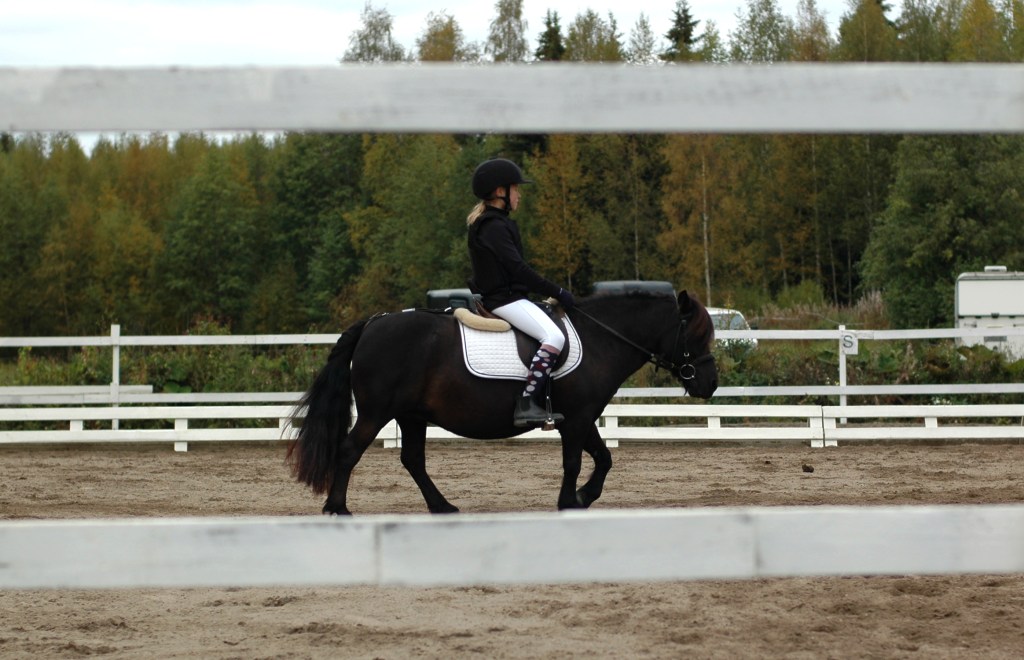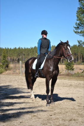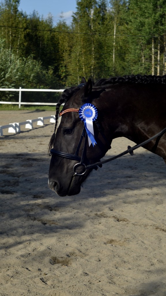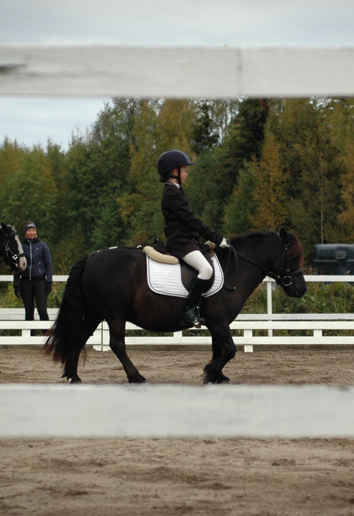”Päivän puurtaja” Korven perheen Black Pearl, ohjissa Kiia Korpi. He voittivat myös Tehtäväratsastus-luokan.