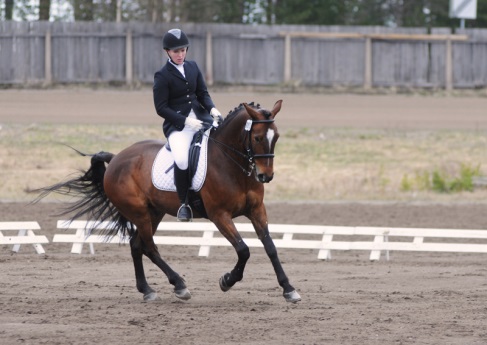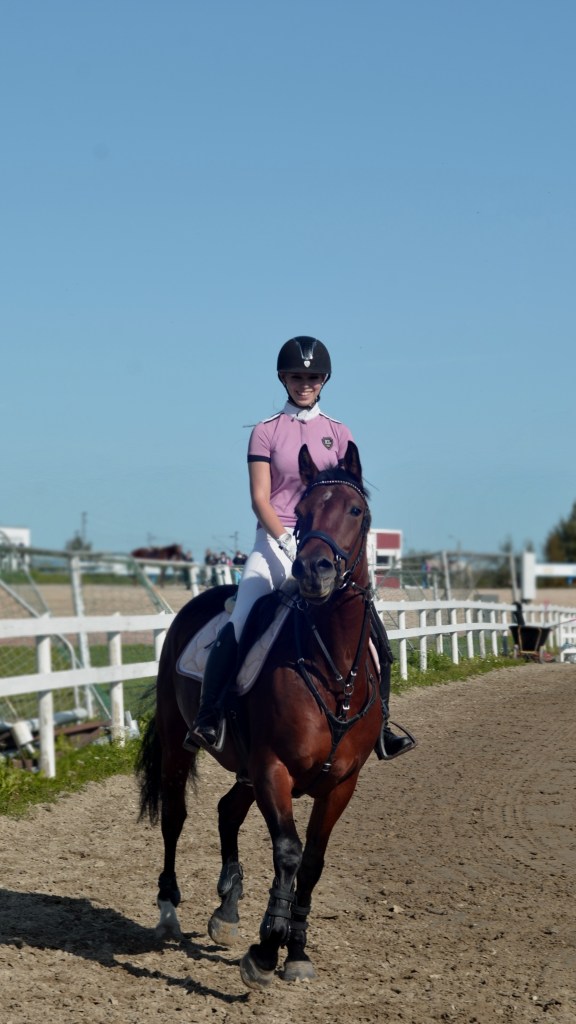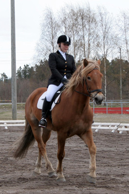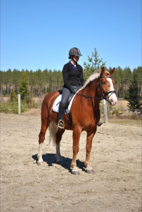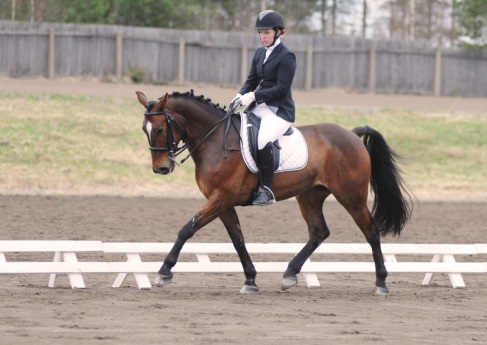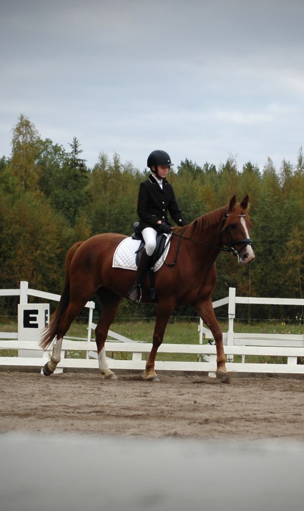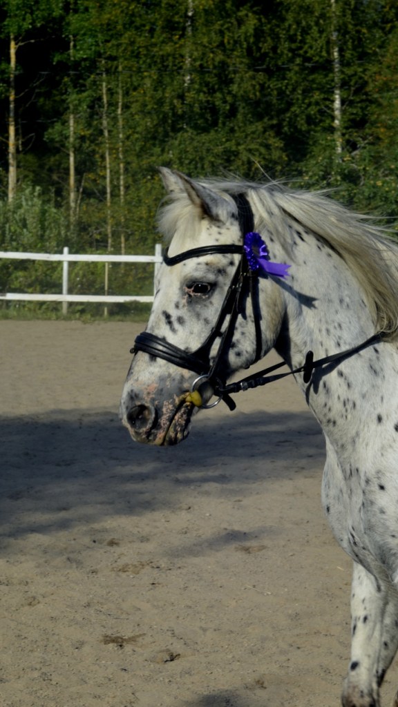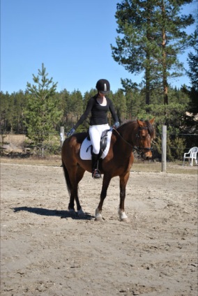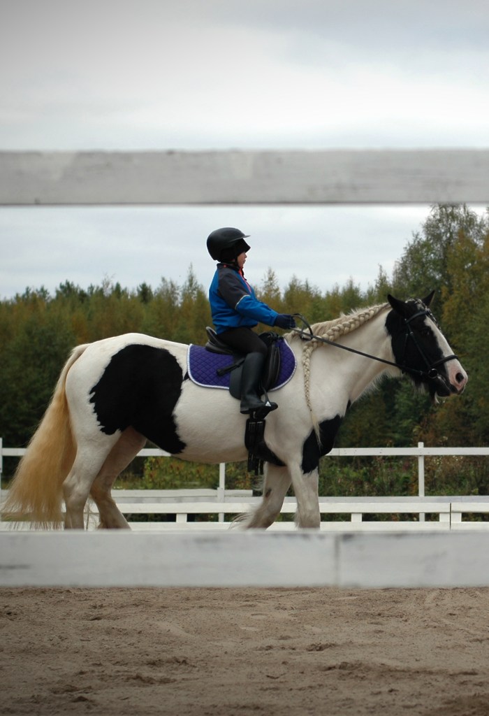 ”Päivän puurtaja” Korven perheen Black Pearl, ohjissa Kiia Korpi. He voittivat myös Tehtäväratsastus-luokan.