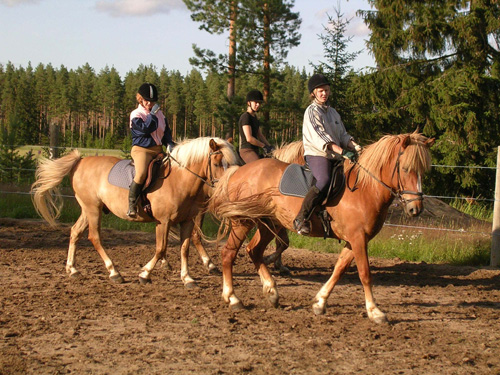 Näytöksessä esiintyvät suomenhevoset ratsastajineen olivat: